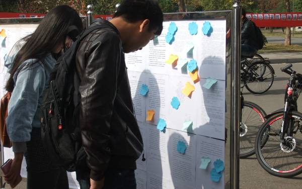 此次大赛从10月25日至11月15日,历时三个星期。评委由路过文学社担任。经过前期的宣传、通知、作品收集以及作品评比,现比赛已落下帷幕。今天中午,在南湖食堂门口举办了优秀作品展览活动,为此次大赛画上圆号。