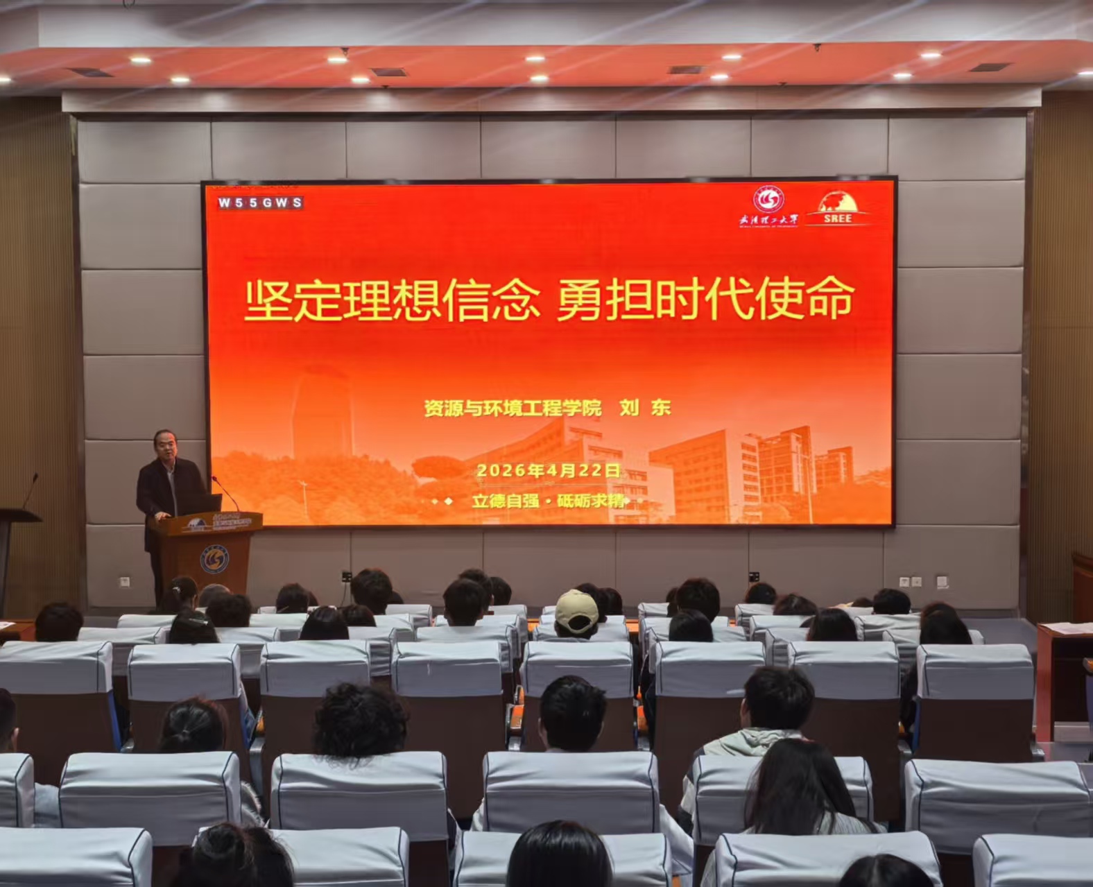根据学校“三项教育”工作安排,资环学院近期开展了“爱学院、爱学校、爱专业、爱行业”主题分享系列活动,活动邀请院长、院党委书记、老教授、优秀校友根据不同年级学生需求、成长特点,有针对性的进行交流分享,实现精准育人,厚植学生家国情怀与专业担当。4月22日下午,学院党委书记刘东,以“坚定理想信念 勇担时代使命”为题,为学院大四、研三全体毕业生讲授了一堂主题鲜明、内涵深刻的专题党课。党课围绕“加强党的理论学习、理工精神传承、树立正确价值观、践行爱校荣校责任”四大核心板块展开,为即将离校的毕业生送上了思想指引与殷切嘱托。